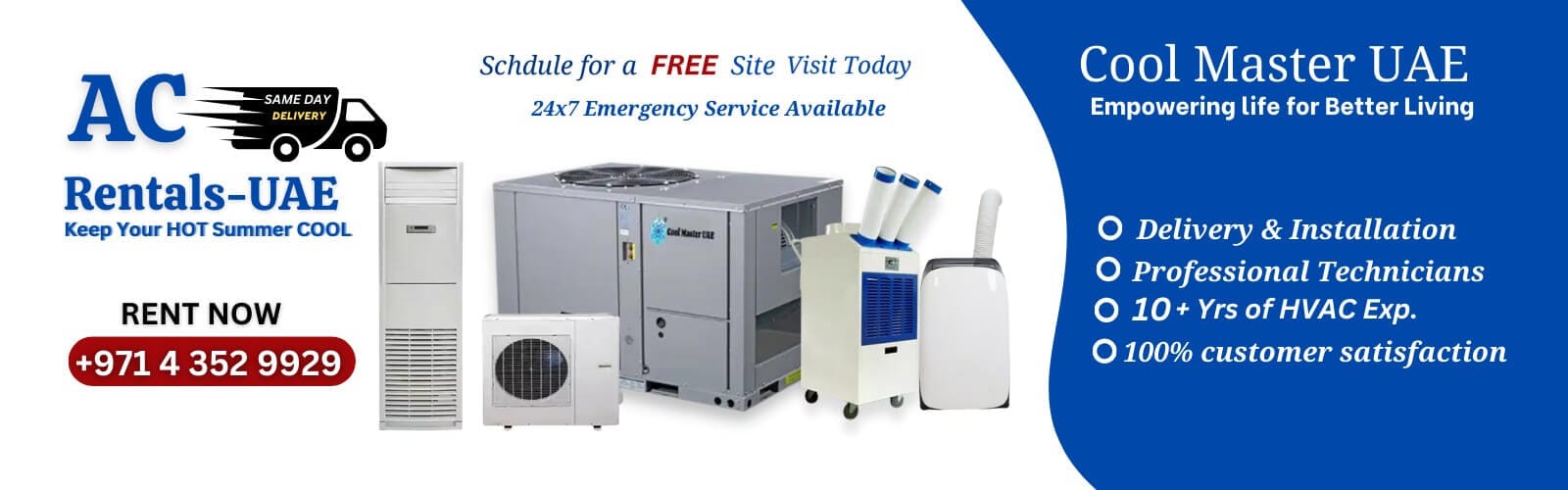 CoolMasterUAE has grown as one of the top tailored AC rental services in UAE. With over 8 years in the emergency and temporary cooling business, CoolMasterUAE will always get you covered. We offer our customized cooling solution throughout the entire process, from site visit, and select the right AC and equipment’s, to delivery, installation and dismantling the units